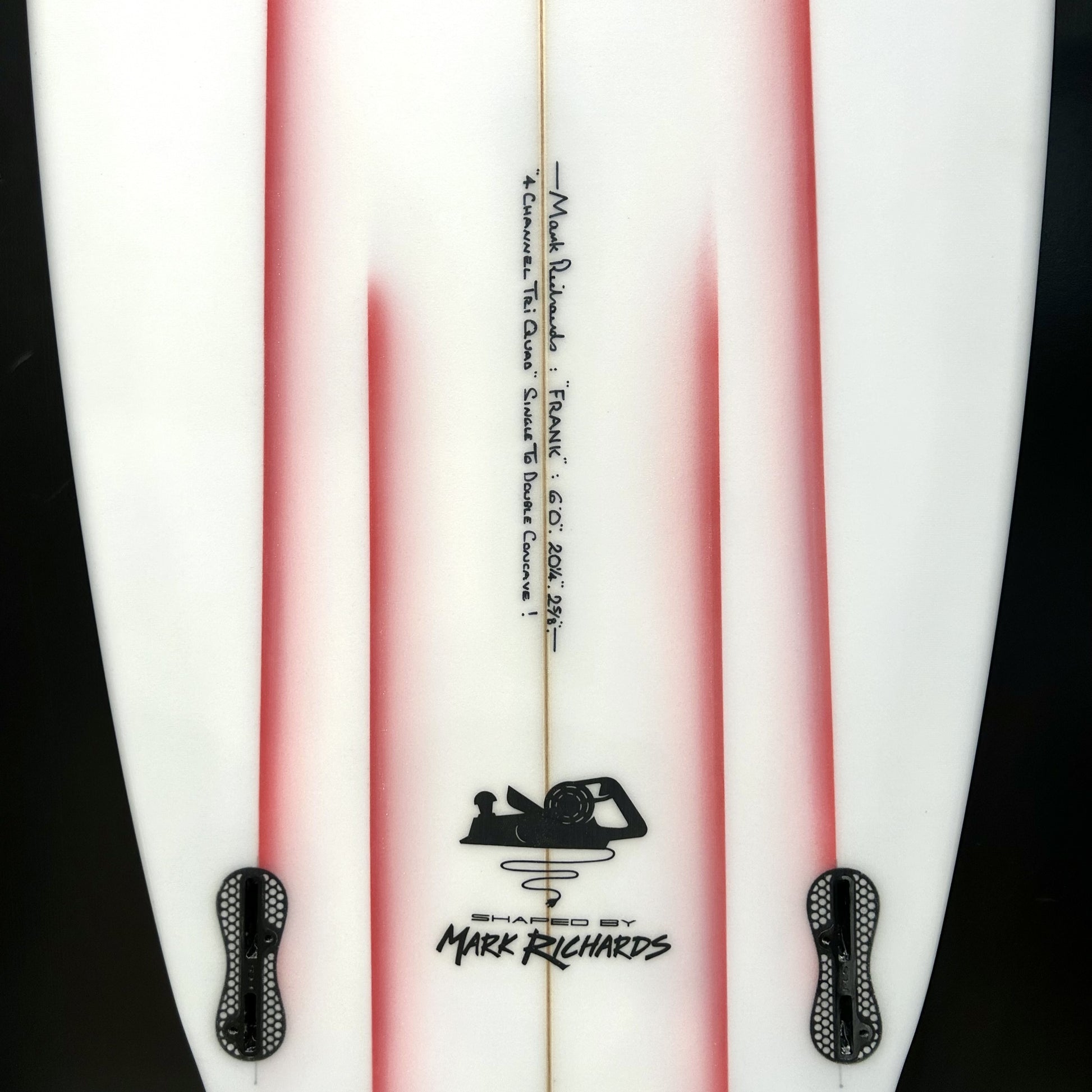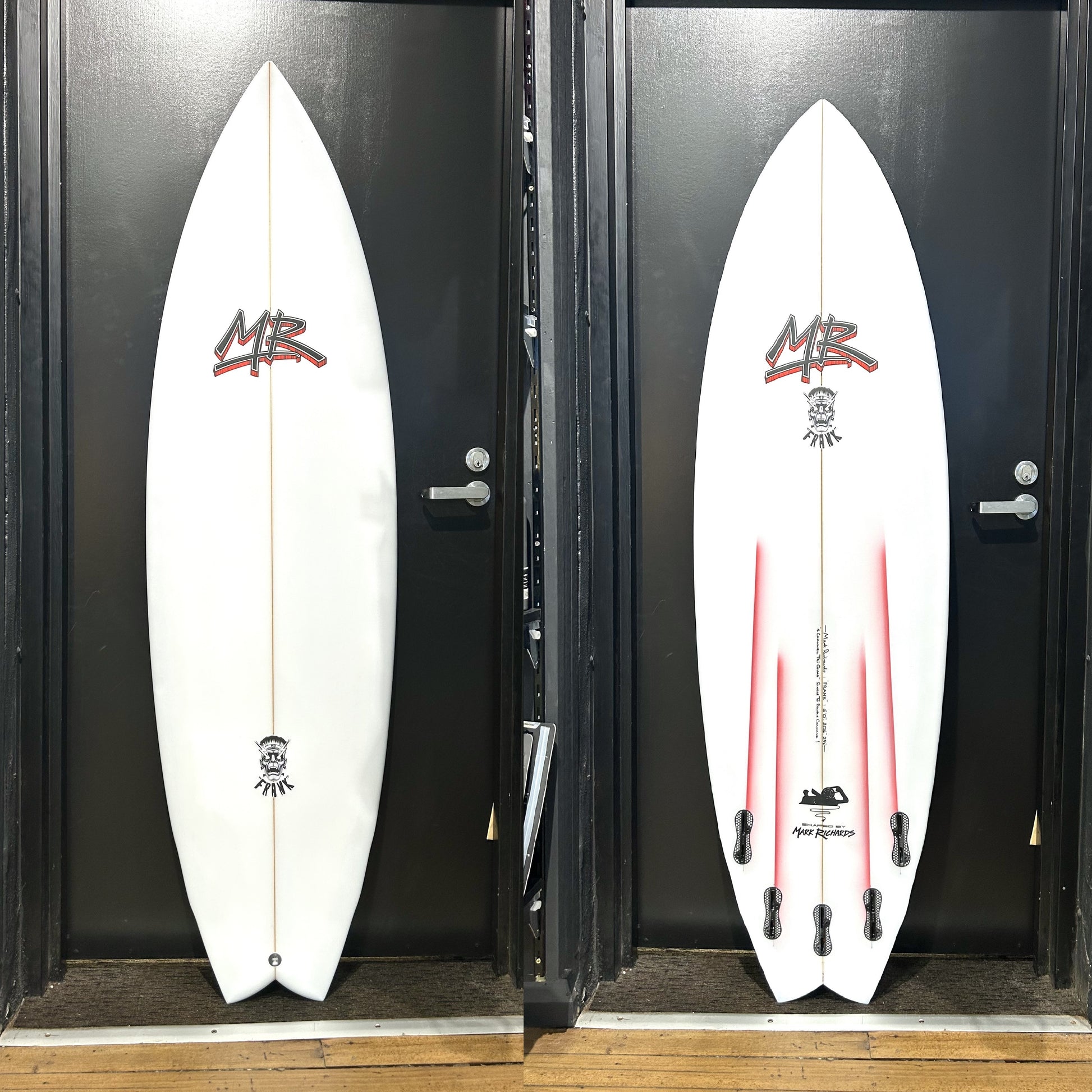 Frank was inspired by Slimes staff member Rich 'Sharkbait' Kelly who asked MR for an experimental fusion of a Super Twin, Flying Fish, Turbo Twin & Rocket. Rich set the board up as a quad and absolutely loved how it surfed. He lent 'Frank' to his good mate and Team Slimes surfer Mitch Ross who was also frothing, said it was one of his favourite boards ever and keeps ordering them. Rossy hassled MR to make it an official model and thanks to his persistence these samples are here!